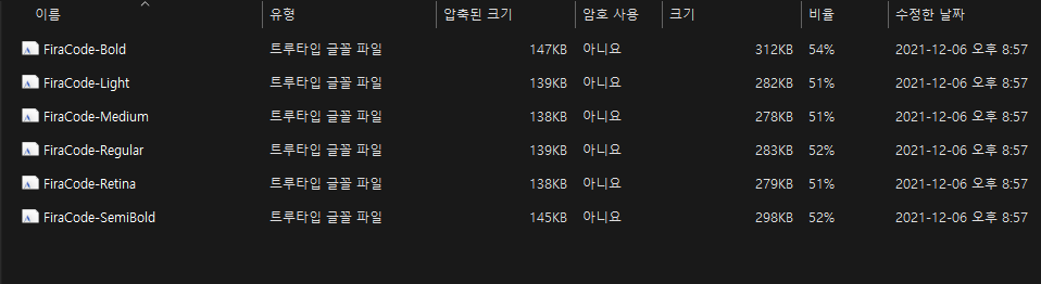 다운받은 파일을 압축해제 해주시고 ttf라고 적힌 폴더를 열어주세요.