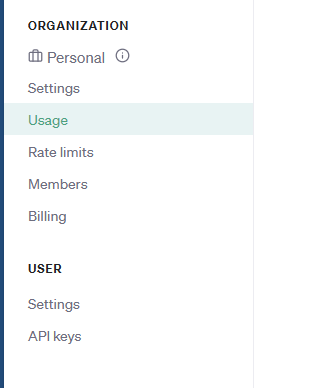 아까 API KEY를 생성한 창에 들어오시면 왼쪽에 사진과 같은 목록이 있을겁니다. 여기서 'Usage'를 클릭해주세요.