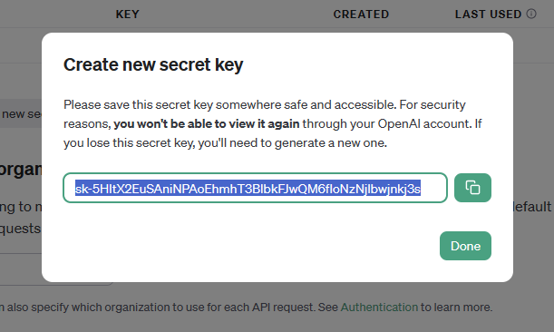openai.api_key = "자신의 api key"